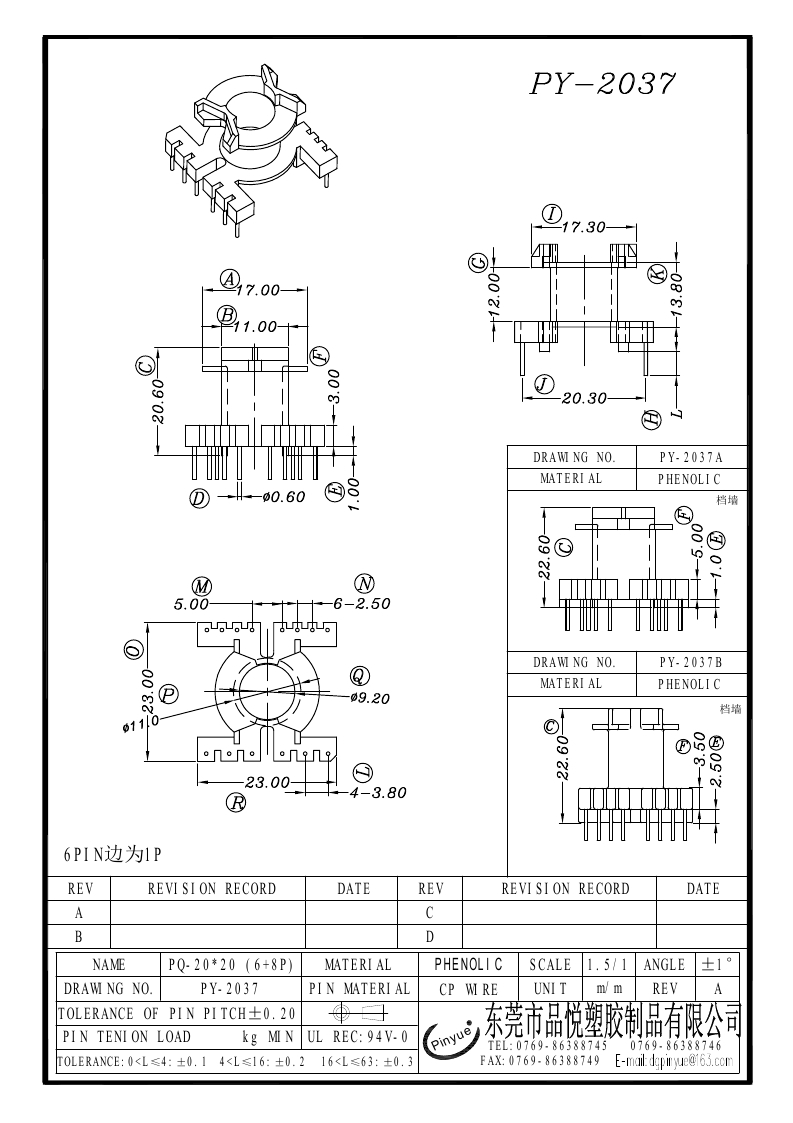 PY-2037三种 PQ20*20(6+8P)立式单槽