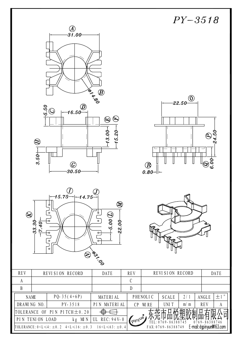 上一个:PY-3406 ETD34(7+7P)卧式双槽