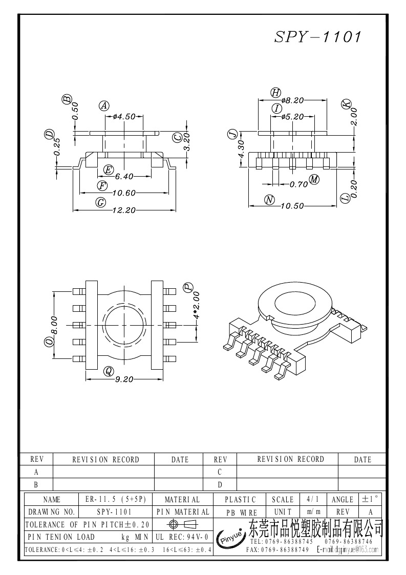 SPY-1101 SMDER11.5 (5+5P)立式单槽