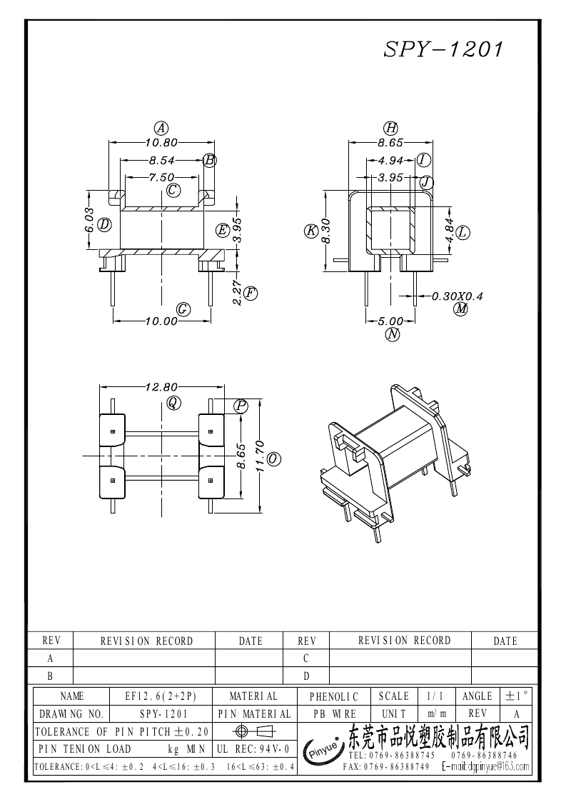 SPY-1201 SMD EF12.6(5+5P)卧式单槽