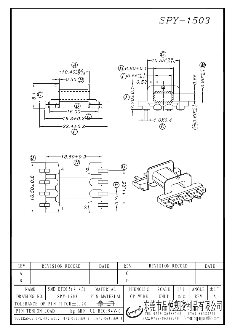 SPY-1503 SMD EFD-15(4+4P) "C"PIN