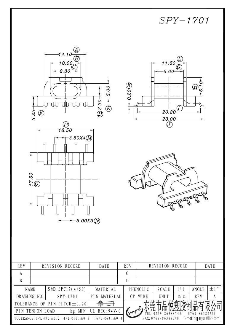 SPY-1701 SMD EPC17(4+5P)卧式单槽