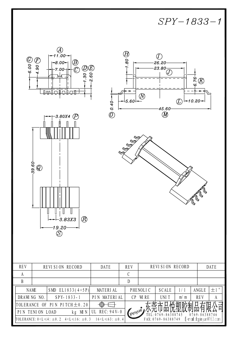 SPY-1833/-1 SMD EL1833(4+5P)卧式单槽
