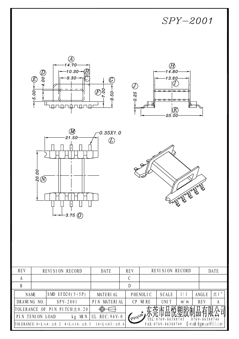 SPY-2001 SMD EFD20(5+5P)卧式单槽