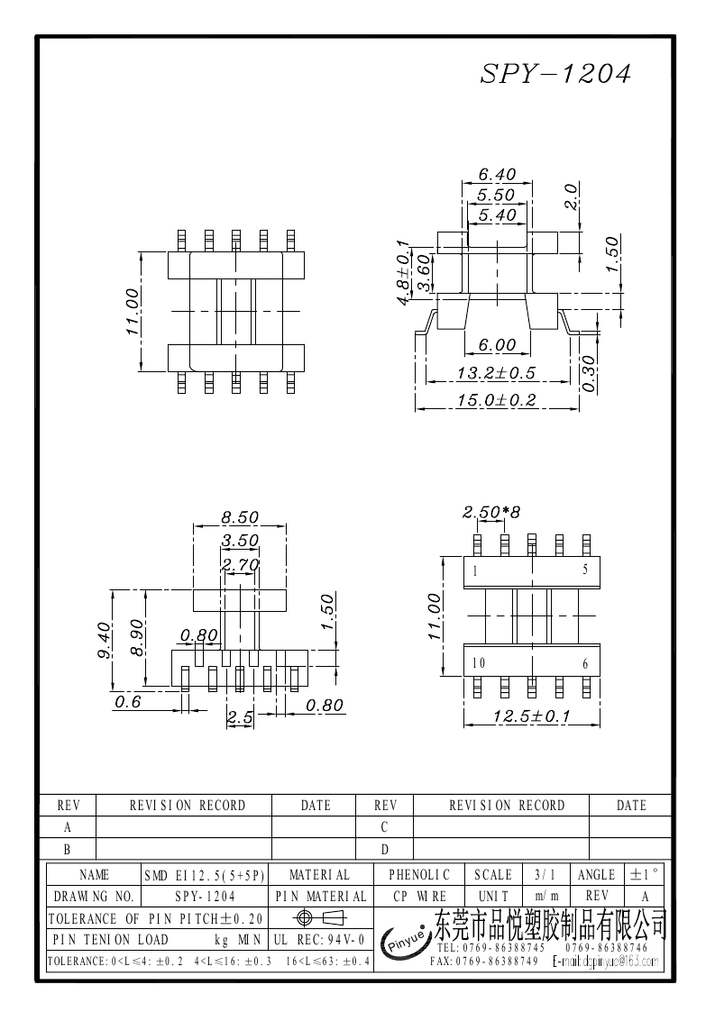 SPY-1204 SMD EI12.5(5+5P)立式单槽