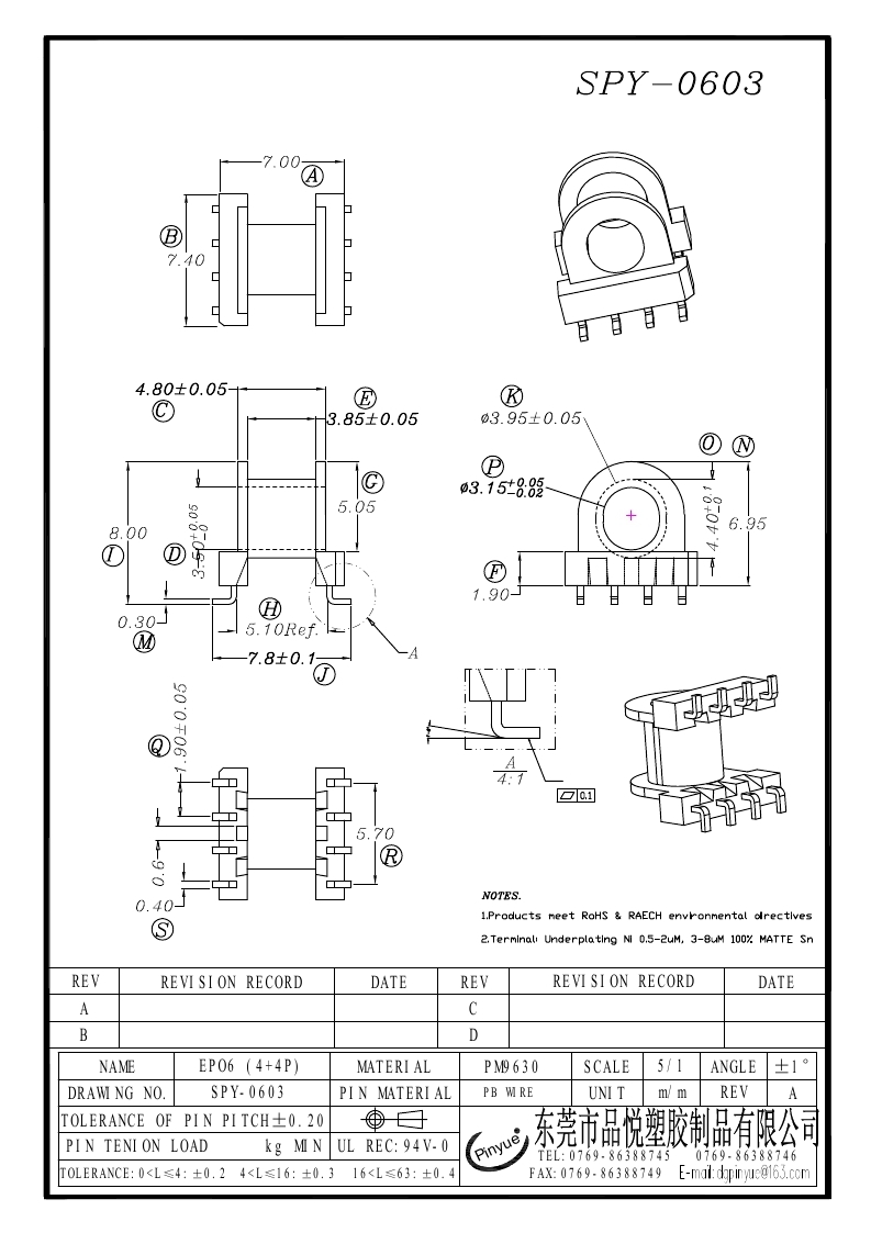 SPY-0603 SMD EPO6.0(4+4P)卧式单槽