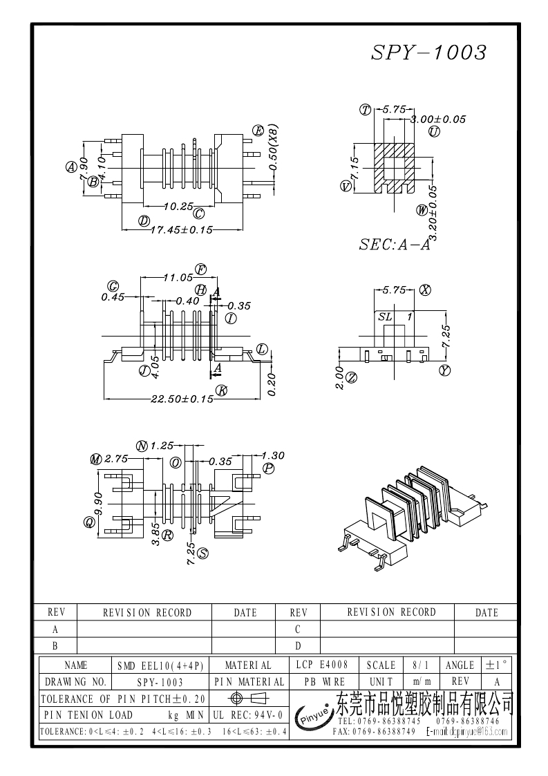 SPY-1003 SMD EEL10(4+4P)卧式四槽