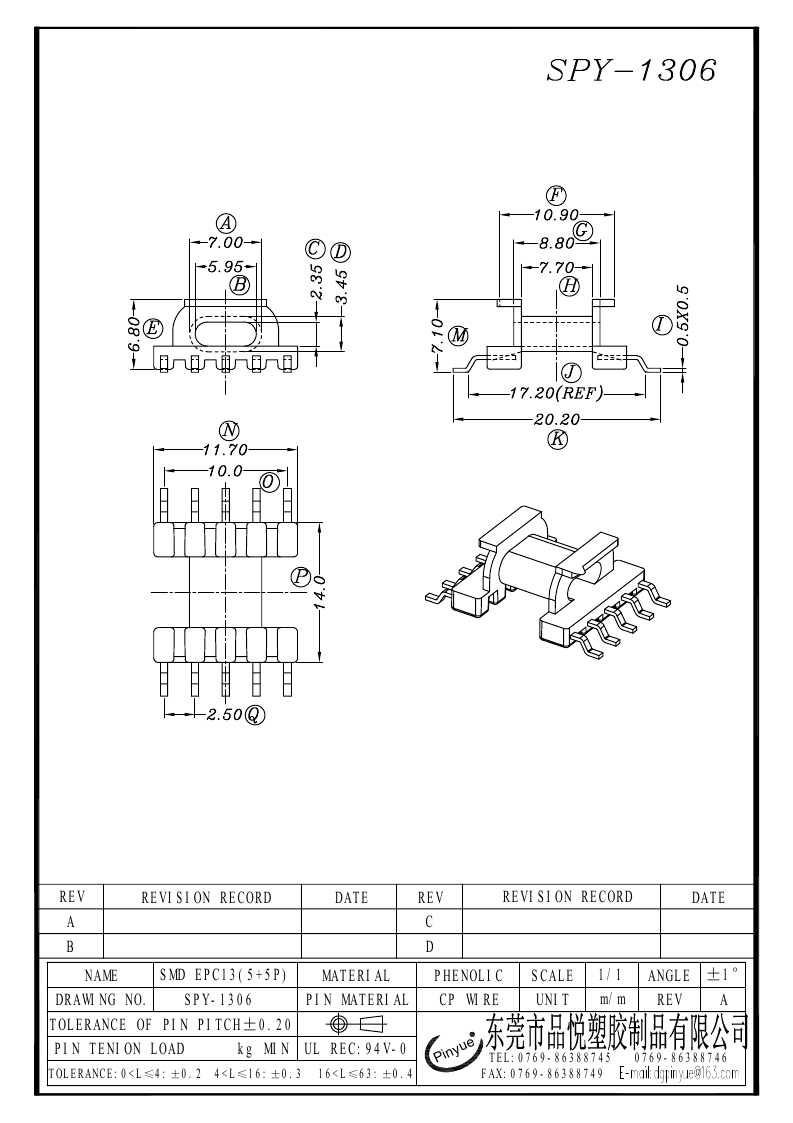 SPY-1306 SMD EPC13(5+5P)卧式单槽