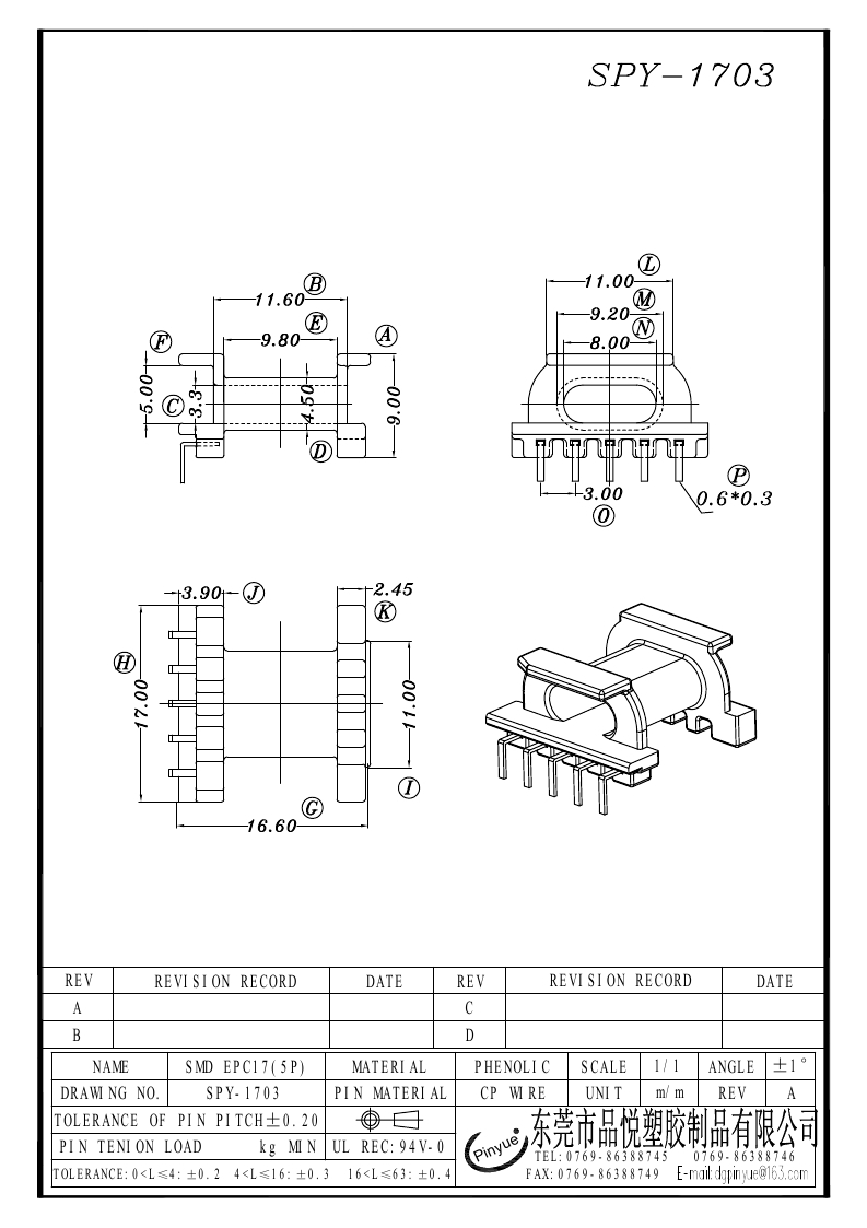 SPY-1703 SMD EPC17(5P)卧式单槽