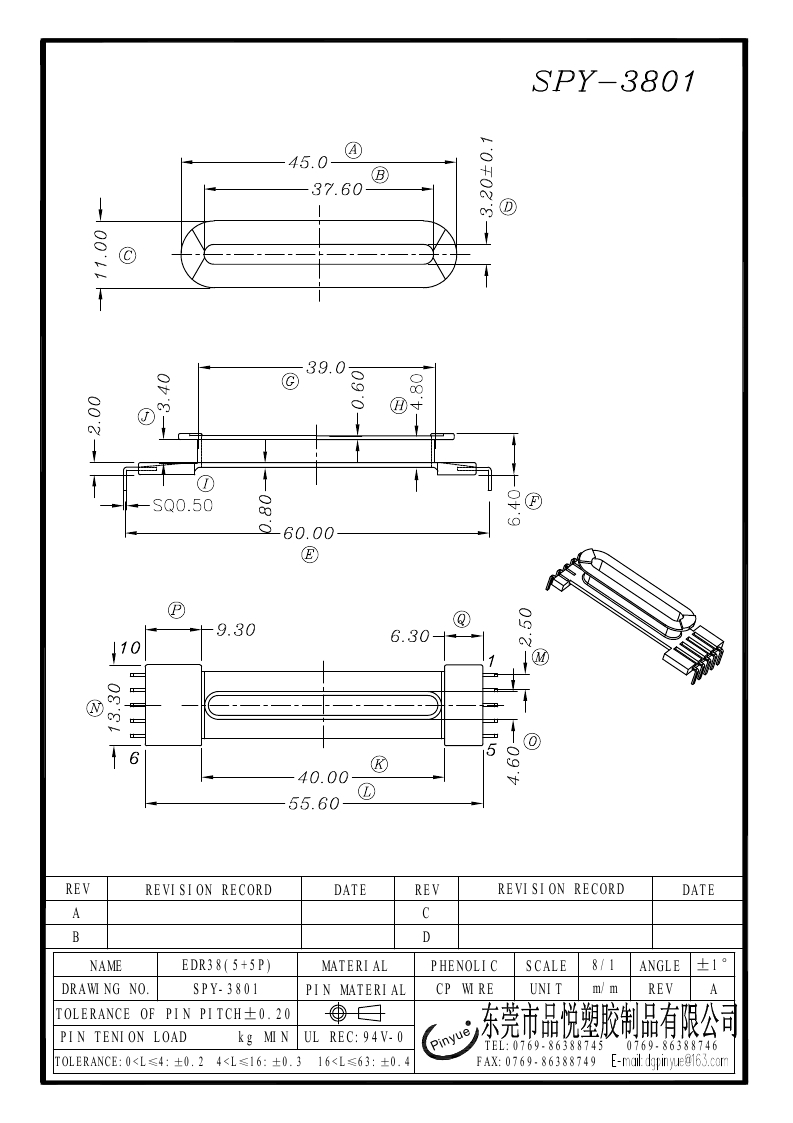 SPY-3801 SMD EDR38(5+5P)立式单槽