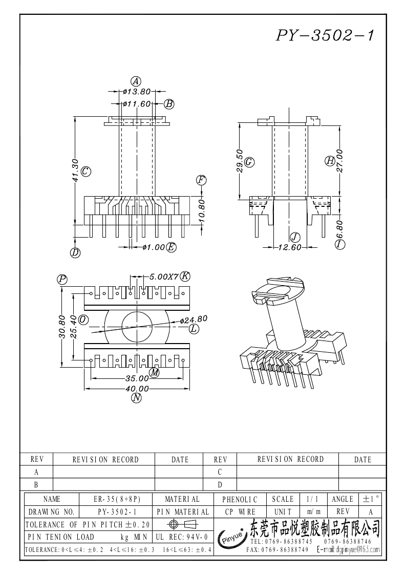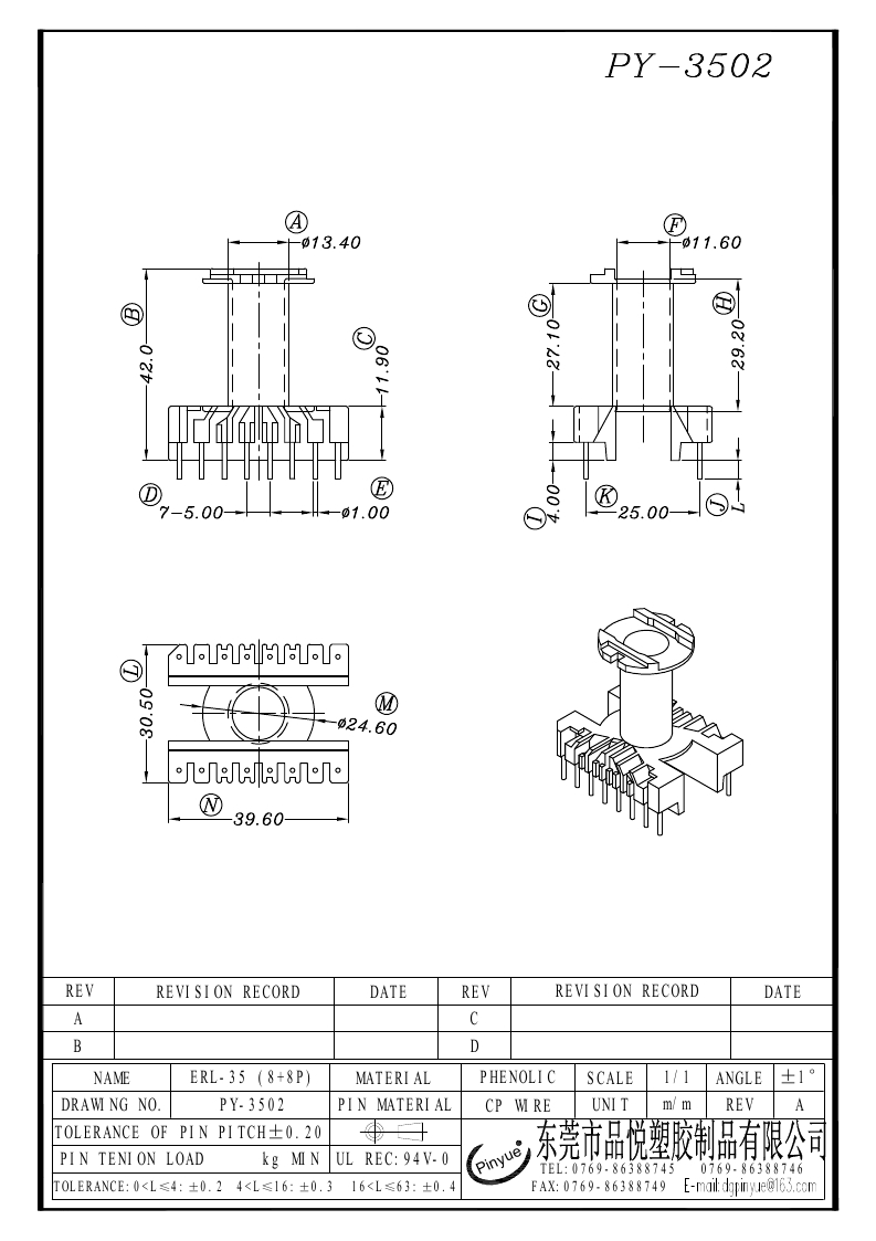 PY-3502/-1 ERL-35(8+8P)立式单槽
