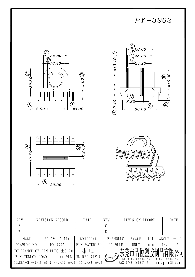 上一个:PY-3901 ETD39(8+8P)立式单槽