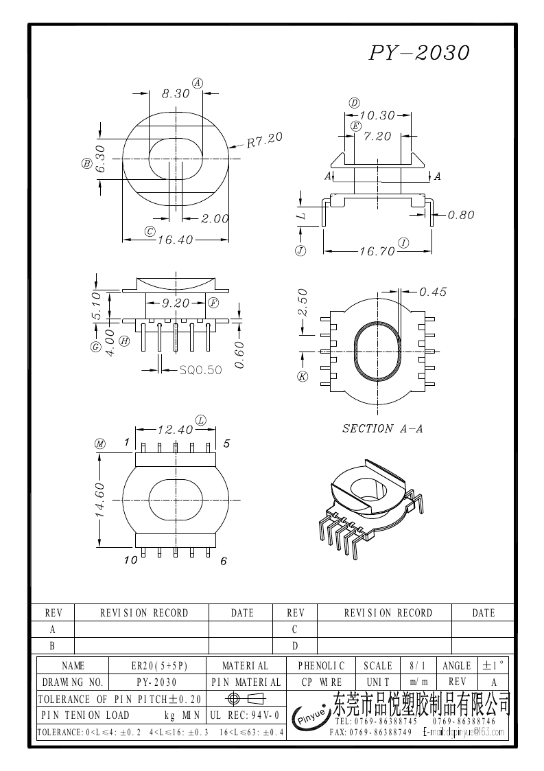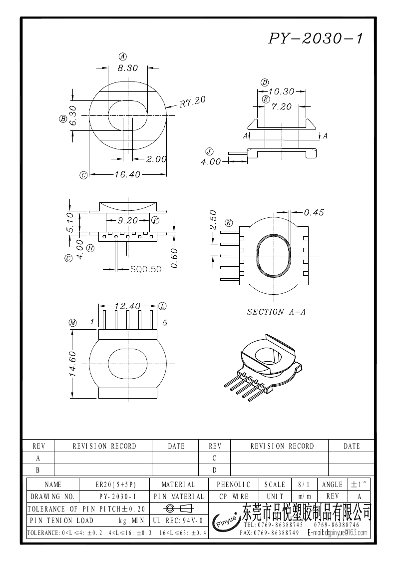 PY-2030/-1 ER-20(5+5P)立式单槽