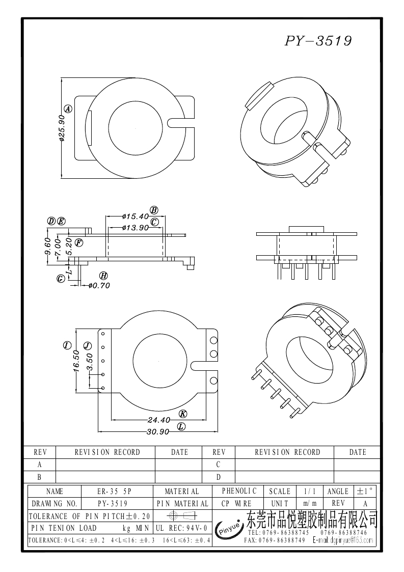 PY-3519 ER35 5P立式单槽