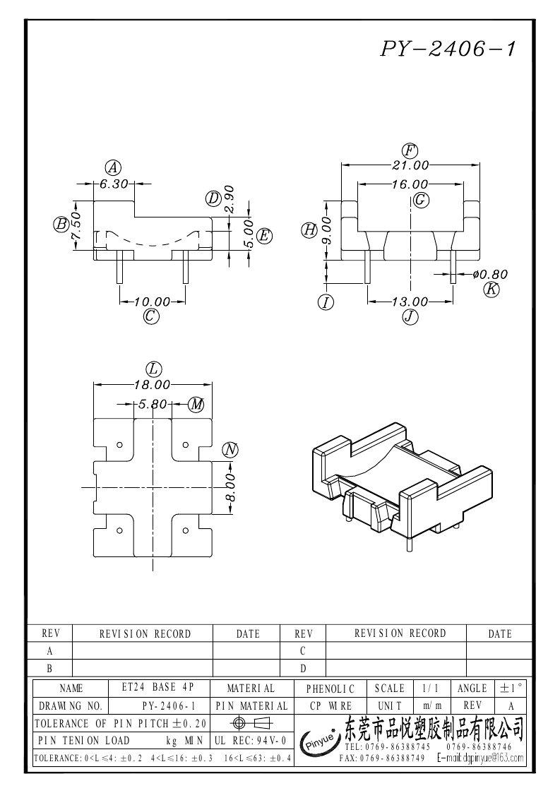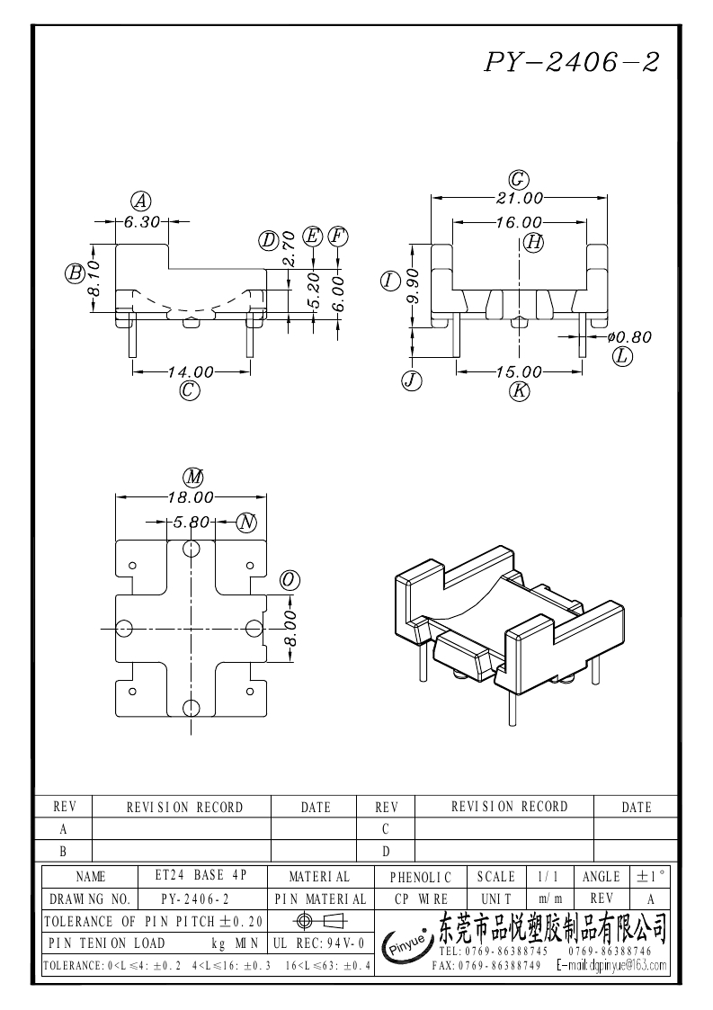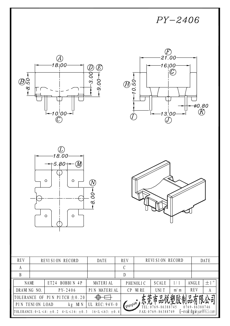 下一个:PY-2407/-1 ET24 BOBBIN 四槽