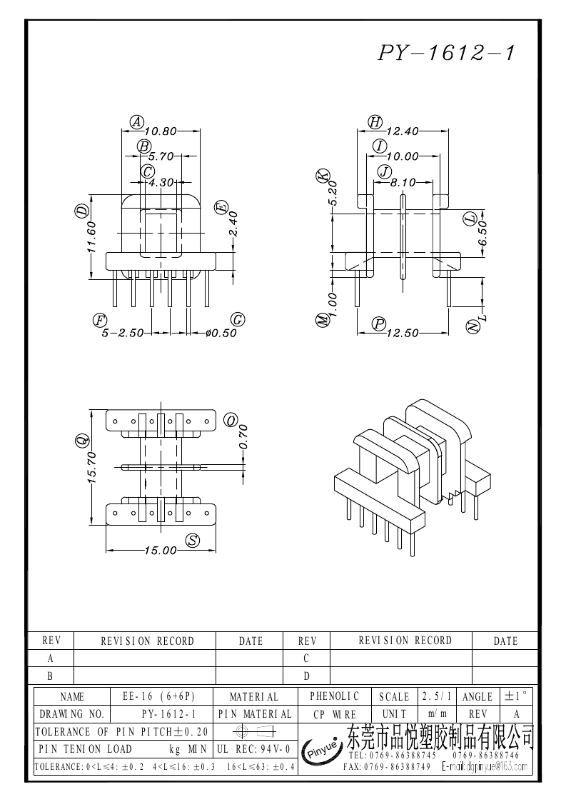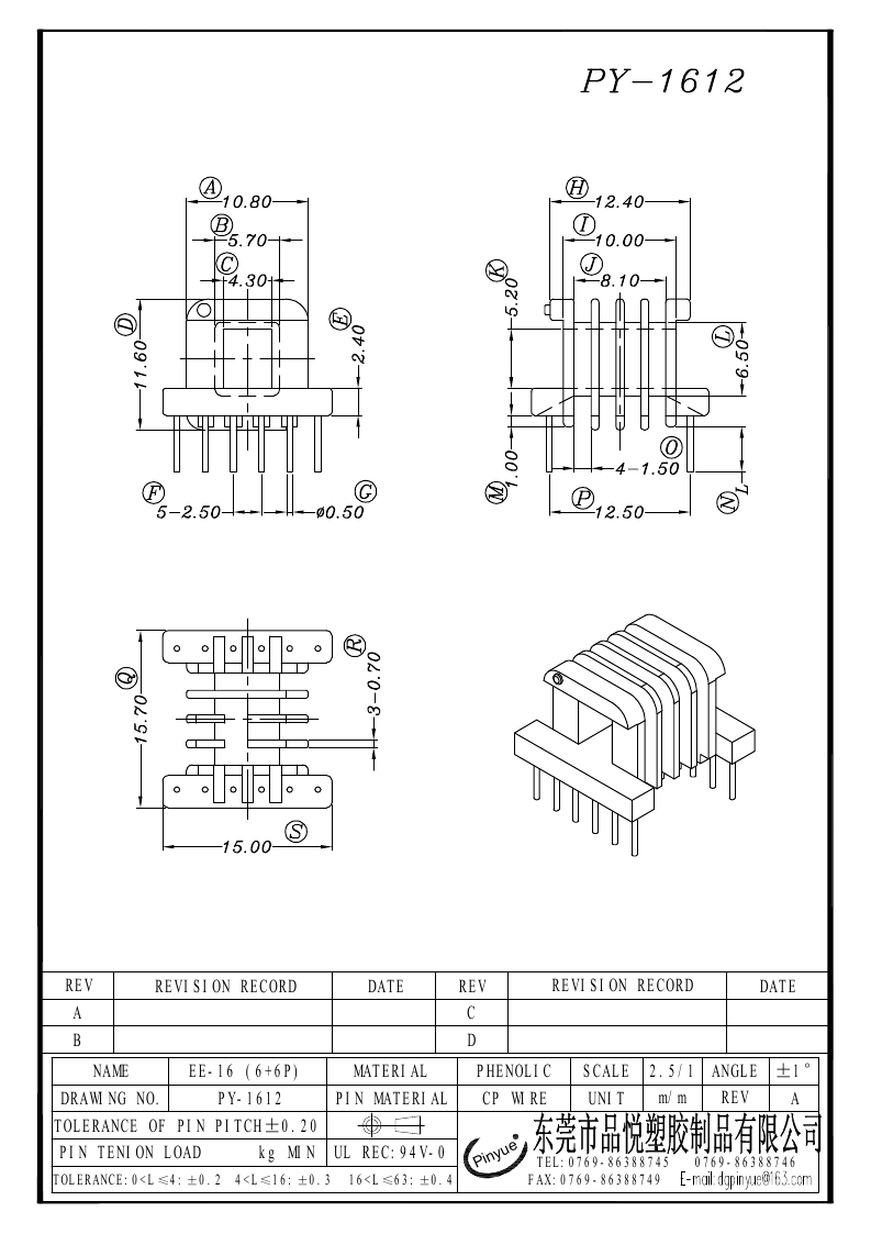 PY-1612/-1 EE-16(6+6P)卧式四槽