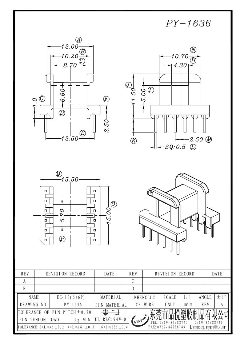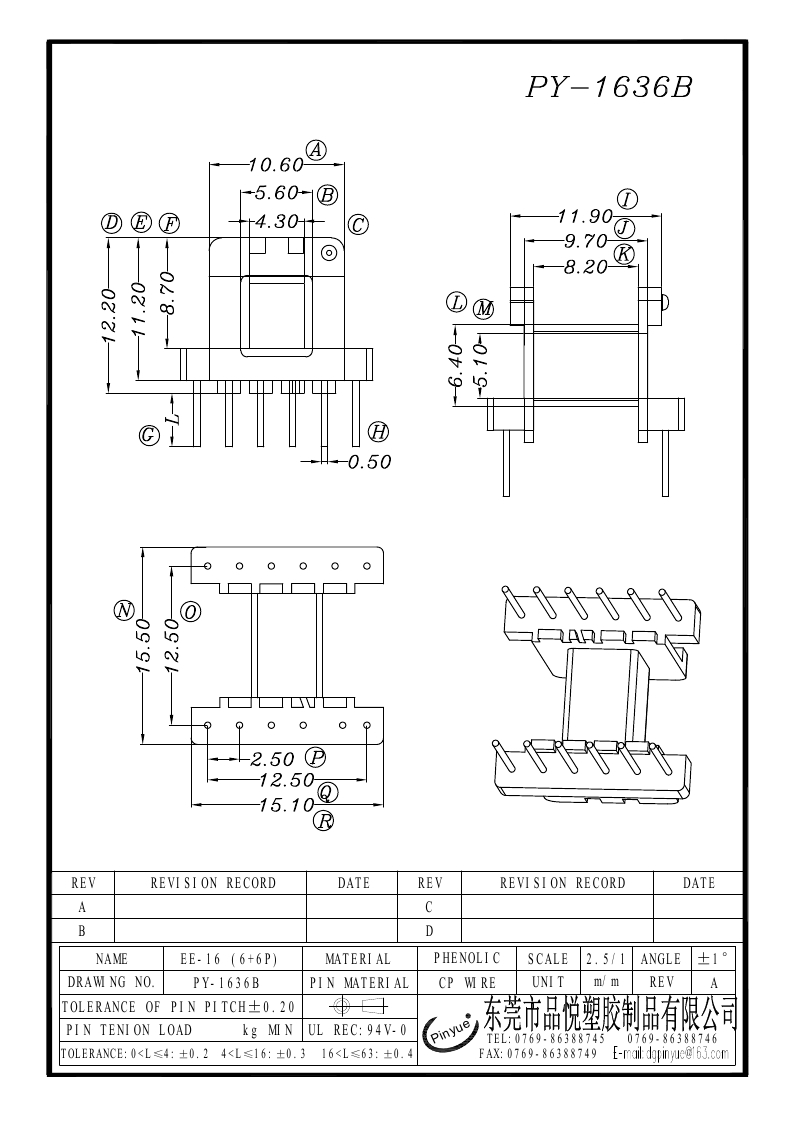 PY-1636三种 EE-16(6+6P)卧式单槽