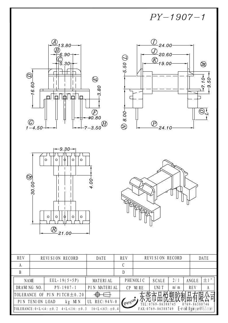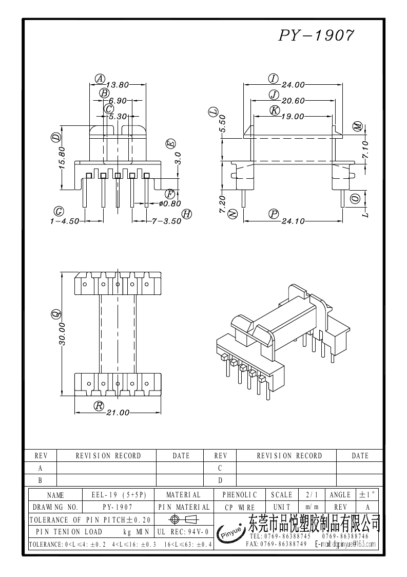 下一个:PY-1908 EE-19(4+6P)卧式双槽