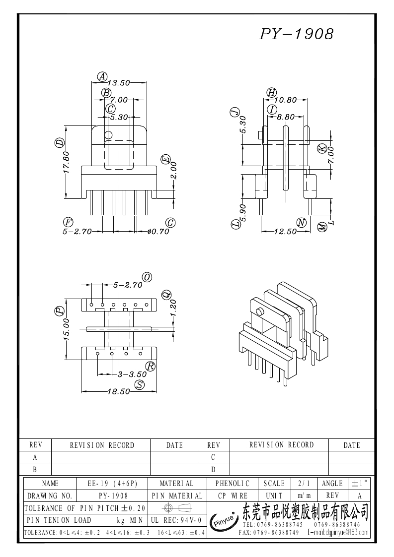 下一个:PY-1909/-1 EE-19(5+5P)立式单槽