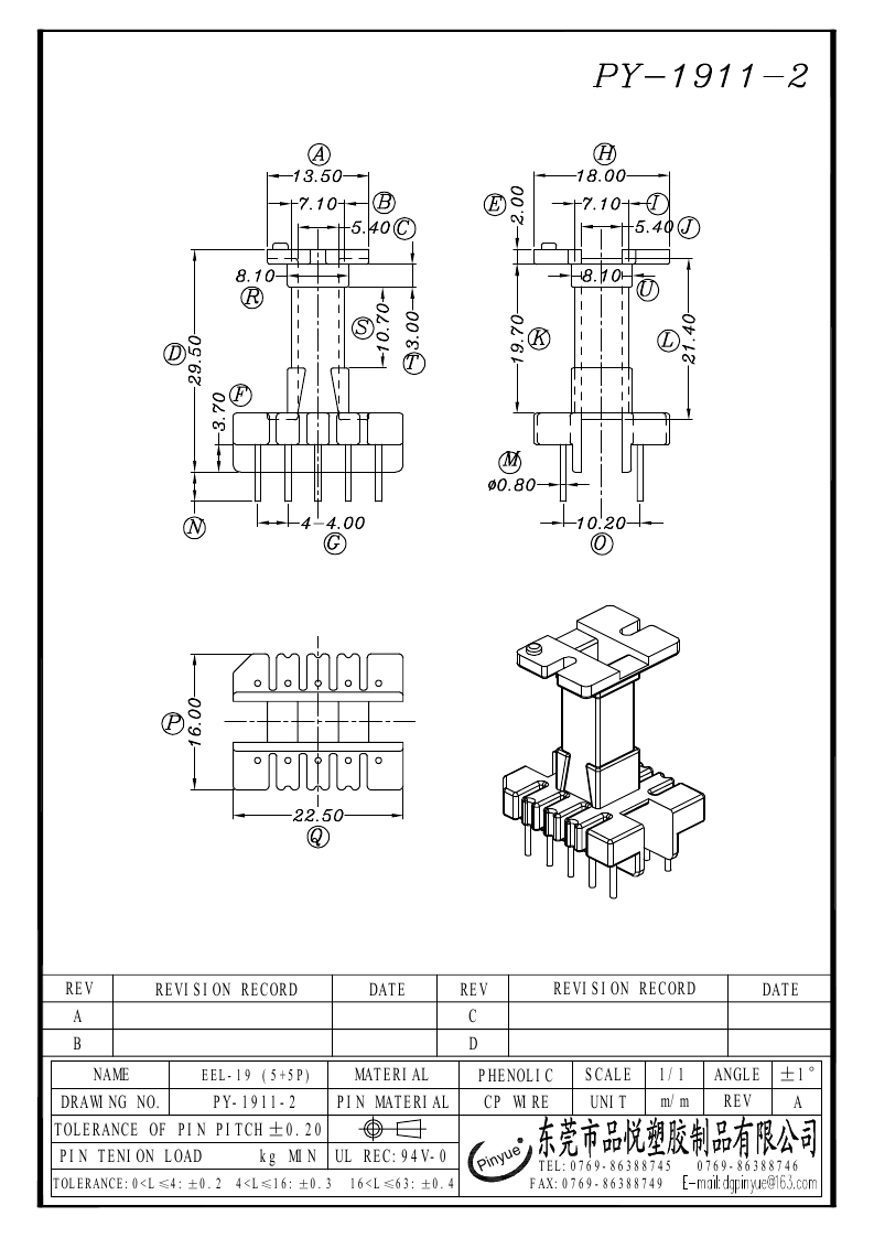 上一个:PY-1910 EE-19(4+4P)立式六槽