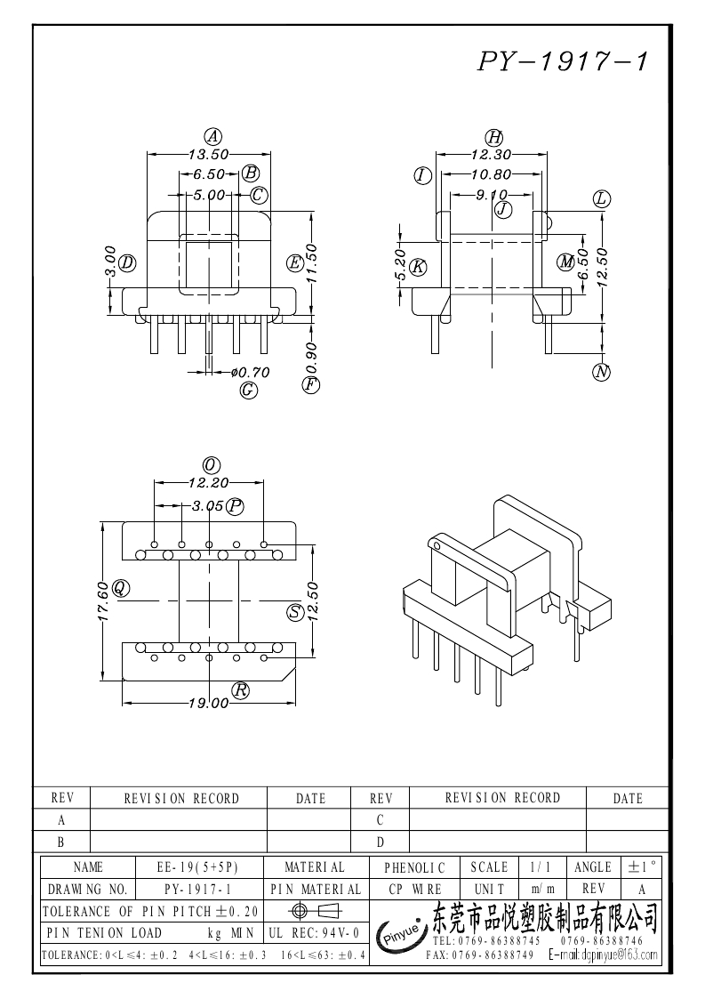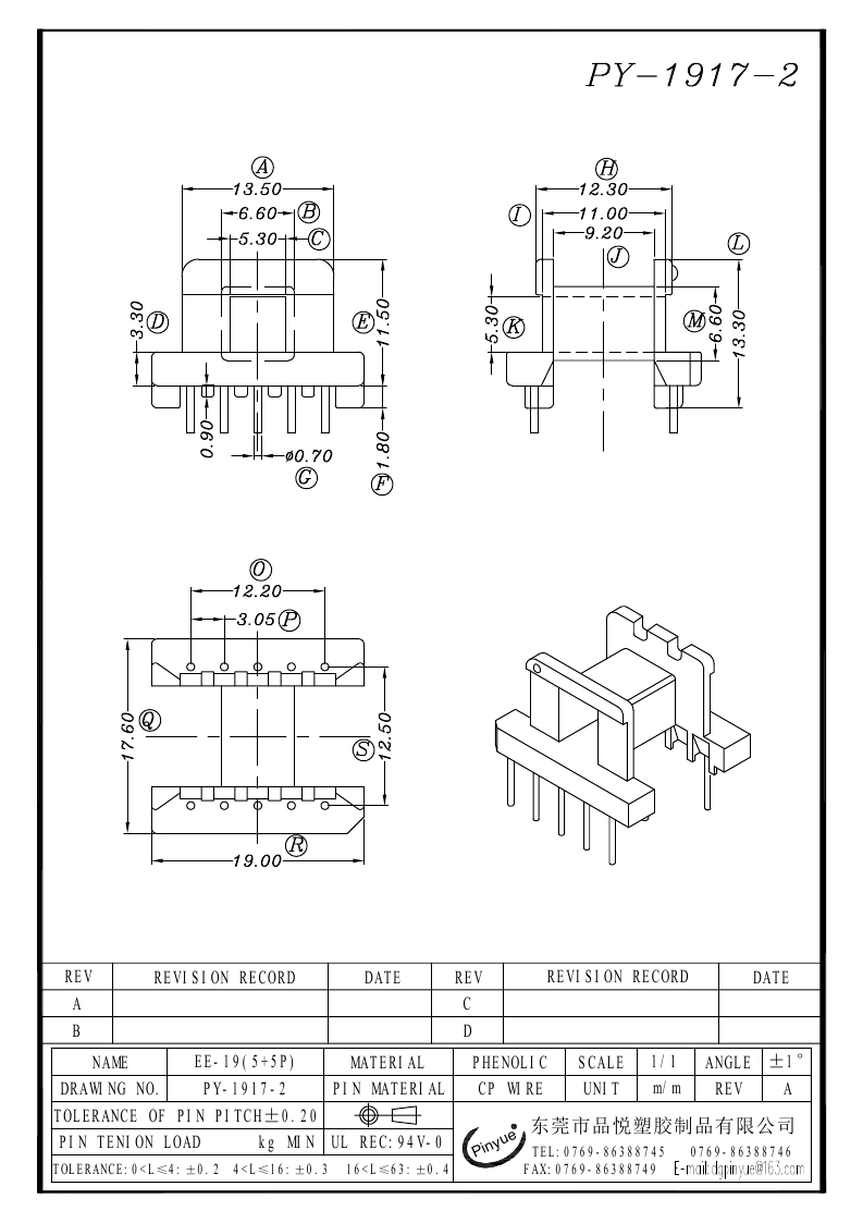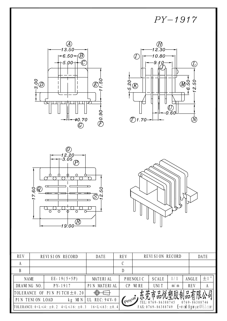 PY-1917三种 EE-19(5+5P)卧式四槽
