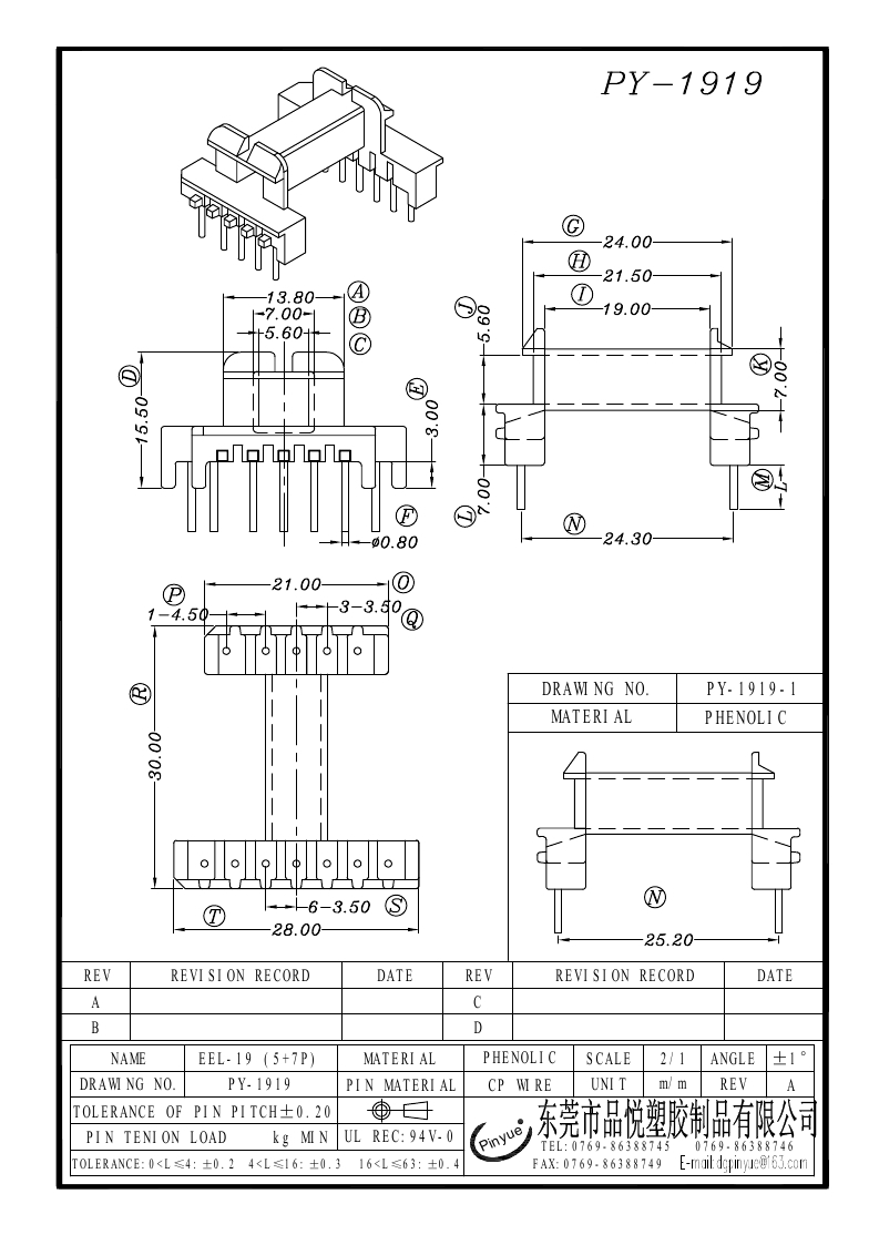 PY-1919/-1 EEL-19(5+7P)卧式单槽