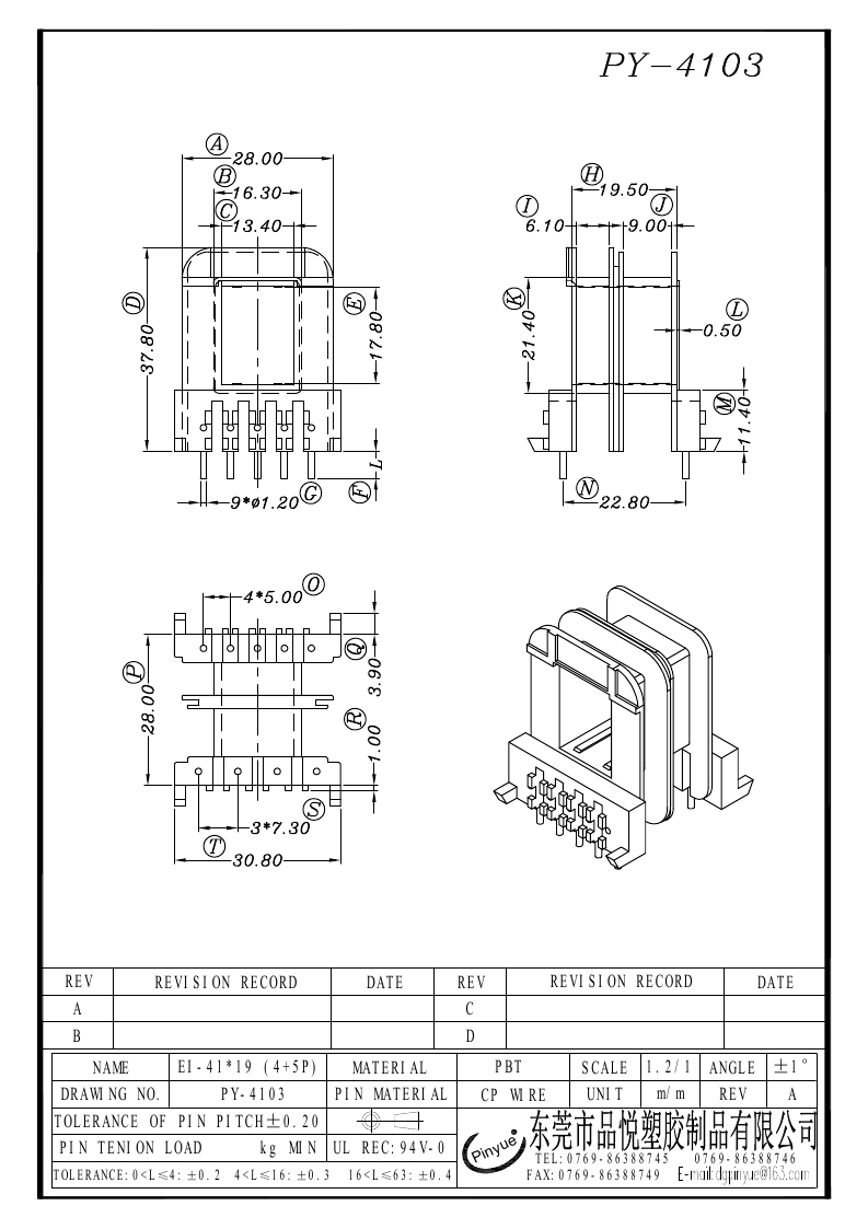 PY-4103 EI-41*19(4+5P)卧式双槽