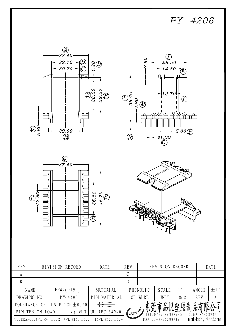 下一个:PY-4207 EE-42 BOBBIN卧式单槽