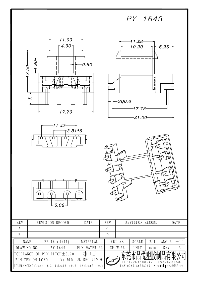 下一个:PY-1646/-1 EE-16(4+5P)立式单槽