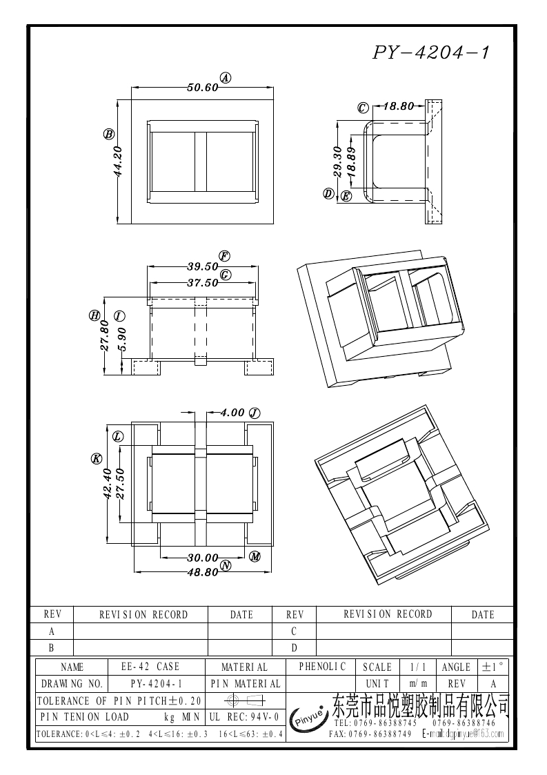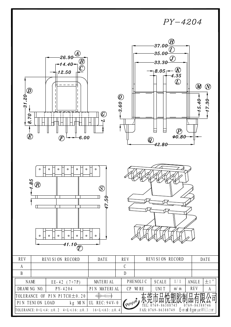 PY-4204/-1 EE42(7+7P)卧式双槽
